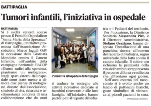 Si è svolta venerdì 13 febbraio, presso il Presidio Ospedaliero “Santa Maria della Speranza” di Battipaglia, l’iniziativa promossa dall’Associazione Arcobaleno Marco Iagulli OdV in occasione della Giornata Mondiale contro il Cancro Infantile, nell’ambito della campagna nazionale FIAGOP “Diamo radici alla speranza, piantiamo un melograno”.